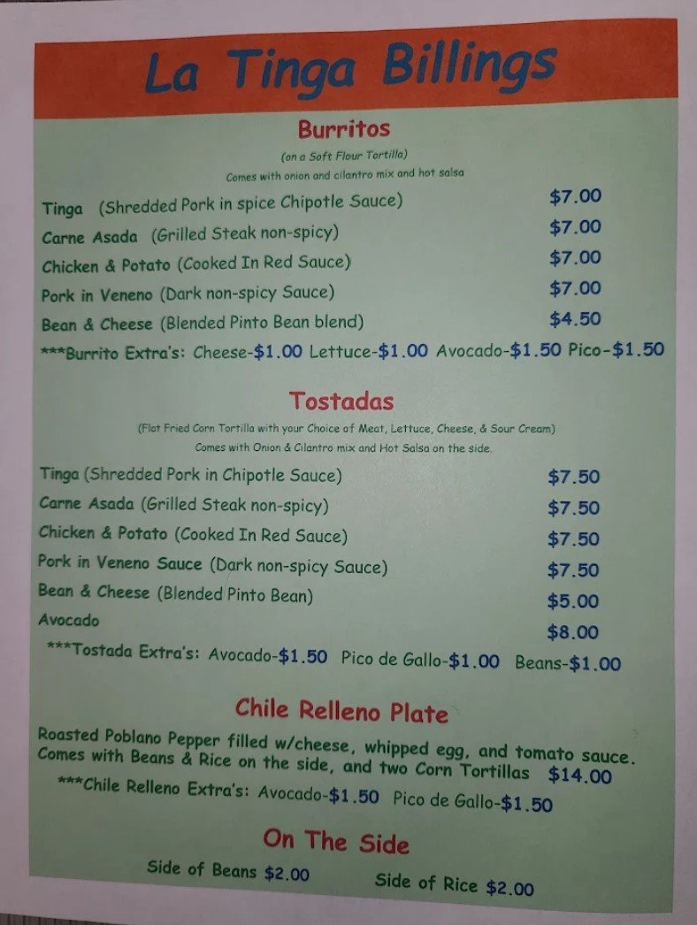 Tucked away at 113 N 30th St. in Billings, MT, La Tinga stands as a vibrant beacon of authentic Mexican cuisine. This establishment is far more than a simple restaurant; it is a labor of love orchestrated by Evelyn, a dynamic force who serves simultaneously as owner, chef, and hostess. Channeling a long lineage of family cooks, she ensures that every guest receives the warm, generous hospitality one might expect when visiting a beloved grandmother’s kitchen. The space itself is intimate and bright, decorated with lush plants and cherished photographs that capture the restaurant’s deep connection to its community. Within this casual, colorful atmosphere, freshness is paramount. The kitchen produces a wide array of meticulously prepared dishes, ranging from savory Breakfast Burritos and Tinga Nachos to distinctively spiced Chile Rellenos and Chicken & Potato Quesadillas. Whether you are craving a Carne Asada Taco, a Tinga Tostada, or simply a Bean & Cheese Burrito, the portions are large, and the ingredients are strictly fresh. Open for breakfast and lunch until 2:00 PM, La Tinga invites you to experience a place where the service is personal, the environment is spotless, and the food is undeniably delicious.